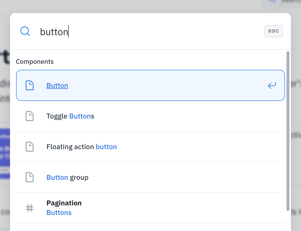 - An icon illustrates the nature of the match; either a page, a header, or a paragraph.
