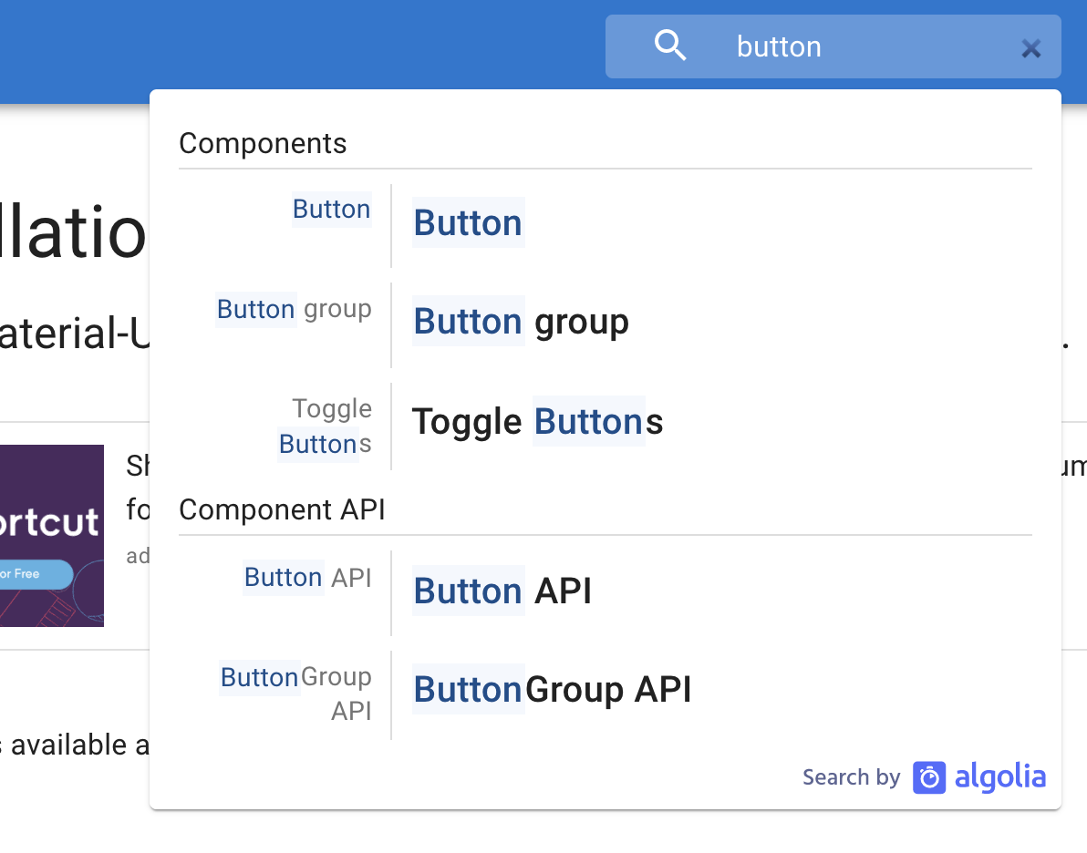 import { useAutocomplete } from '@mui/base/AutocompleteUnstyled';import { useButton } from '@mui/base/ButtonUnstyled';import ModalUnstyled from '@mui/base/ModalUnstyled';import SliderUnstyled from '@mui/base/SliderUnstyled';import { useSwitch } from '@mui/base/SwitchUnstyled';import Portal from '@mui/base/Portal';import TrapFocus from '@mui/base/TrapFocus';
